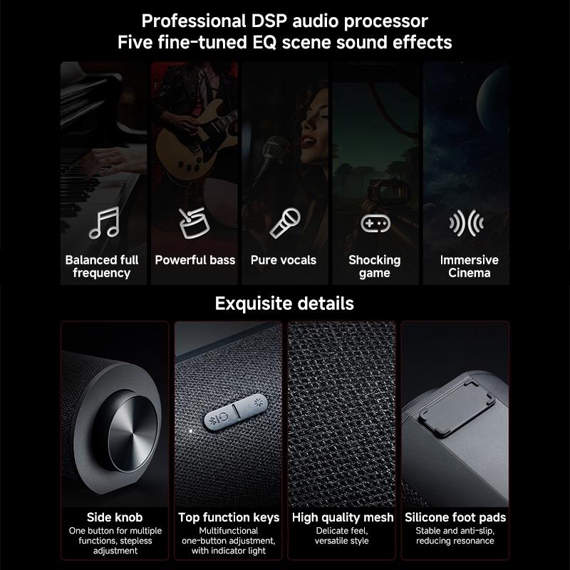 7. Four-unit acoustic configuration, large full-range speakers, surging bass