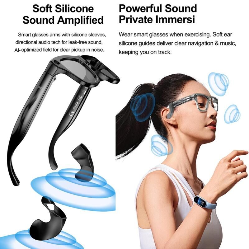 This product is an AI-powered smart glasses with features including calling, music playback, recording, photography, video recording, AI multi-modal recognition, AI translation, meeting recording, and AI conversation. It aims to provide a comfortable, all-day AI smart experience. The product embodies the concept of hands-free operation and intelligent collaboration, combining high-definition imaging with multi-scenario AI capabilities. Whether for business meetings, cross-language communication, daily note-taking, or knowledge retrieval, users can break free from device constraints and operate through their field of vision, seamlessly integrating intelligence into every real-time scenario.