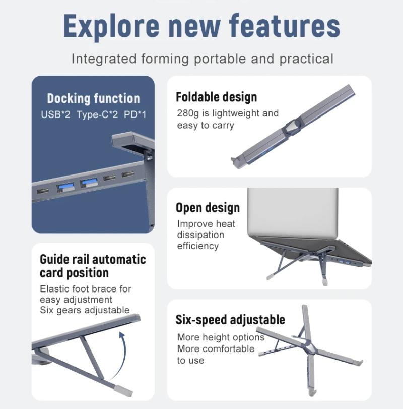 5. 5-in-1 docking station, multifunctional laptop stand