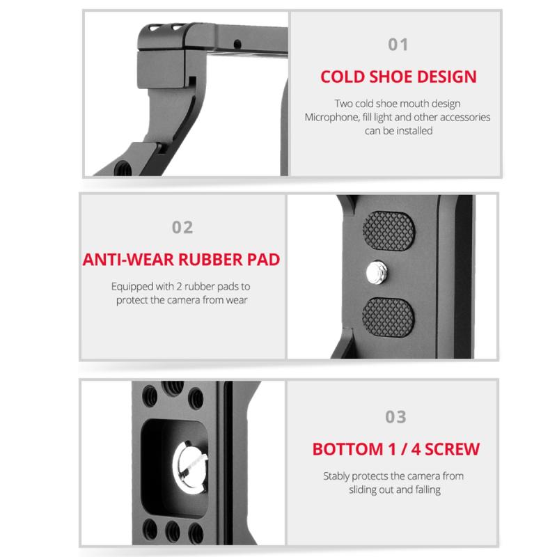 4. The cage body is with 1/4 screw to stably protect the camera from slipping out and falling