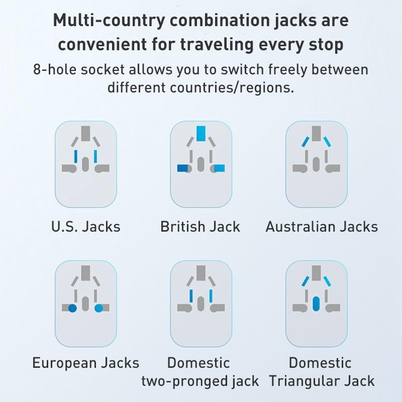 6. Comply with multi-country standard sockets, and can be converted and used at will.