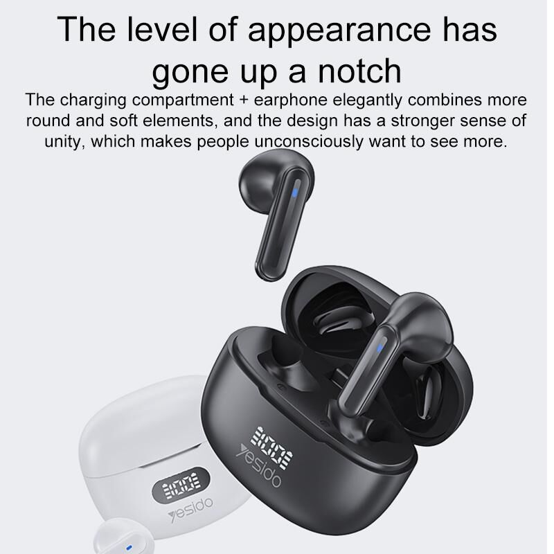 Yesido TWS19 Bluetooth 5.3 LED Digital Display ENC Noise Reduction Bluetooth Earphone (White) (Yesido)