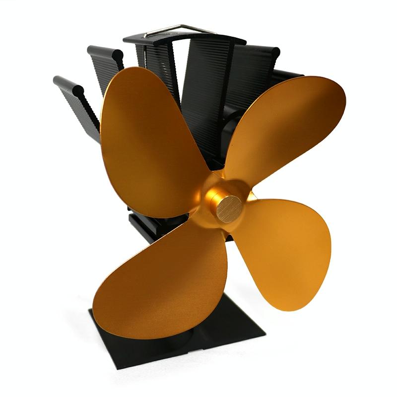 YL603 Eco-friendly Aluminum Alloy Heat Powered Stove Fan with 4 Blades for Wood / Gas / Pellet Stoves (Gold)