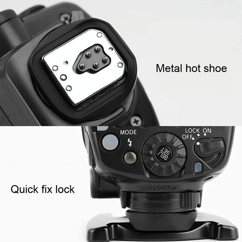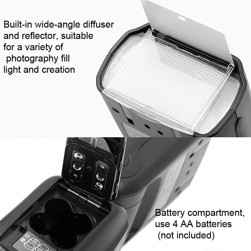 9. Support auto/manual zoom: support auto and manual zoom, flash coverage can be switched between AUTO, 20~200mm.