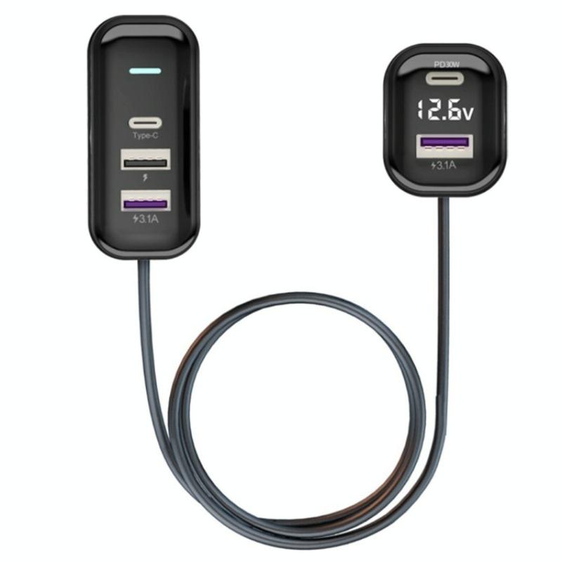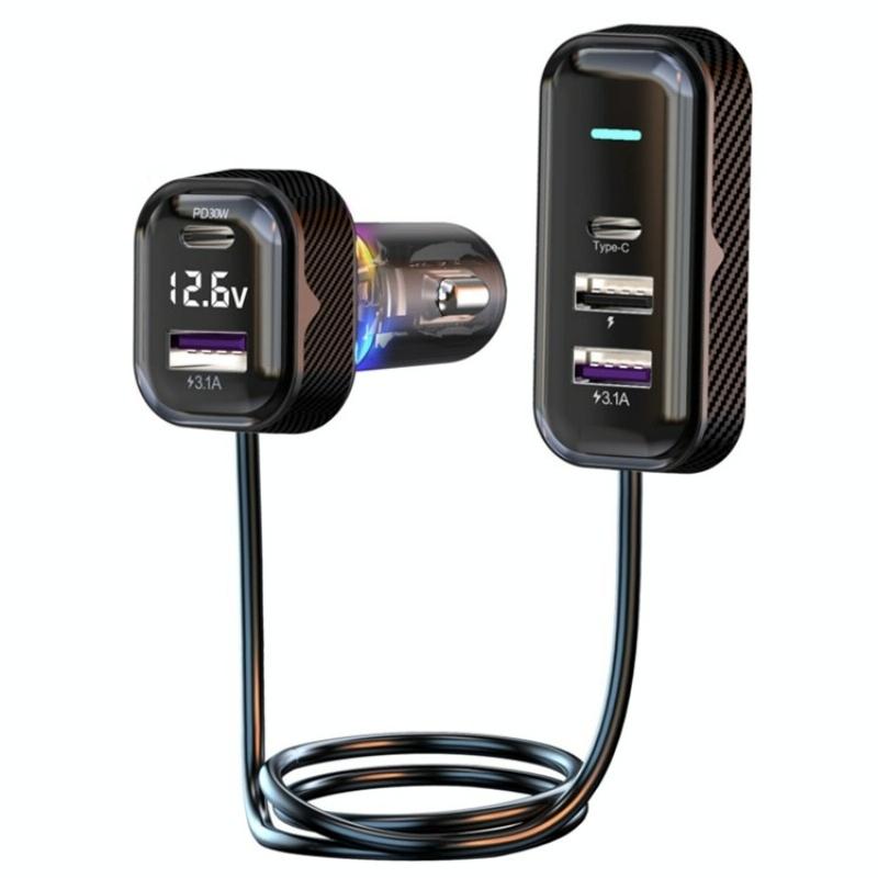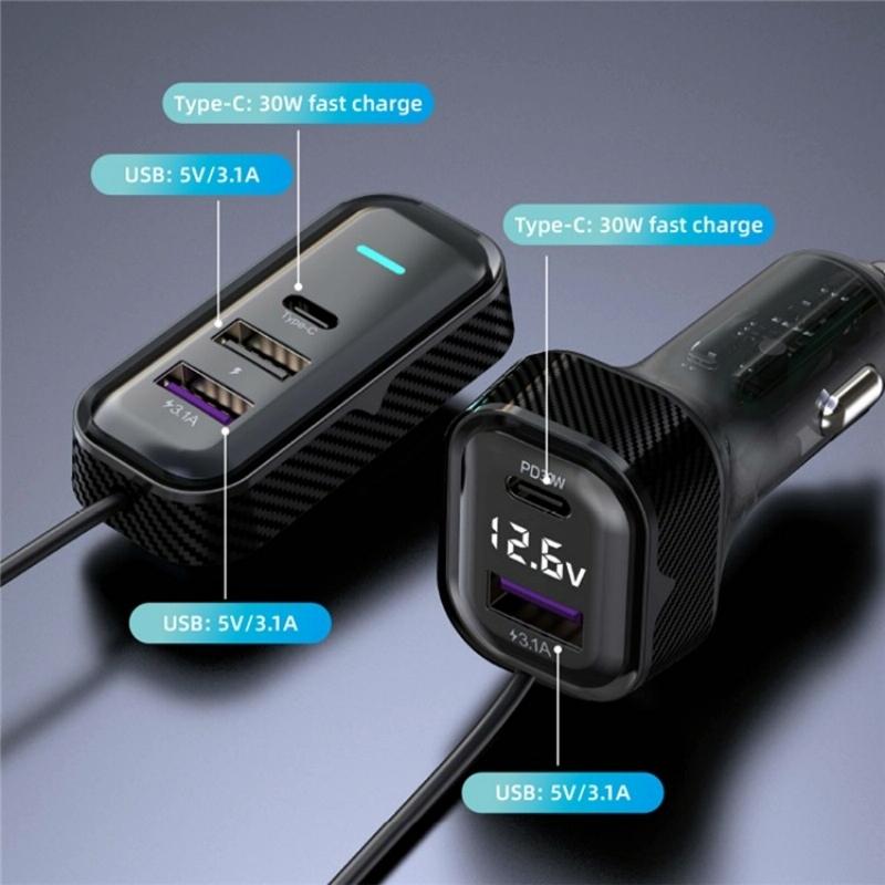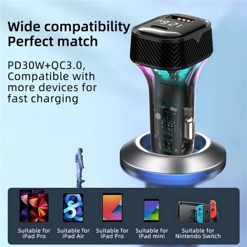 2.Dual Type-C ports support PD30W fast charging technology, this car charger delivers rapid charging to your devices, ensuring they stay powered up on-the-go