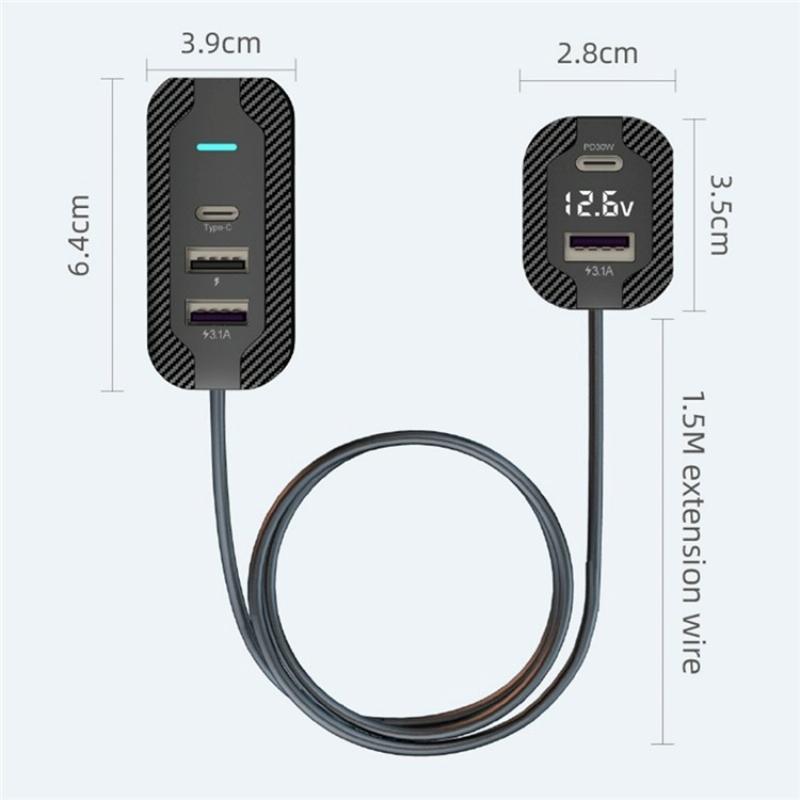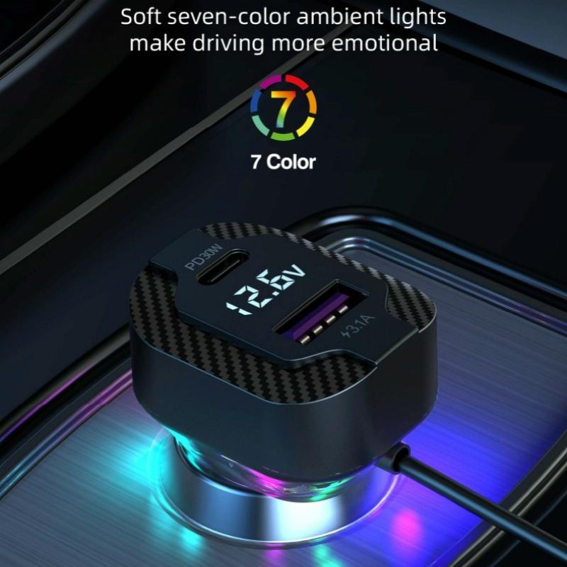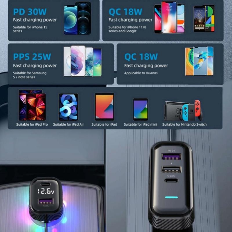 2.Dual Type-C ports support PD30W fast charging technology, this car charger delivers rapid charging to your devices, ensuring they stay powered up on-the-go