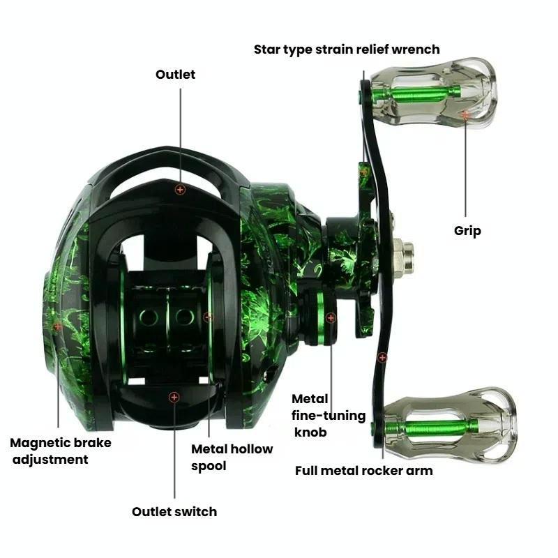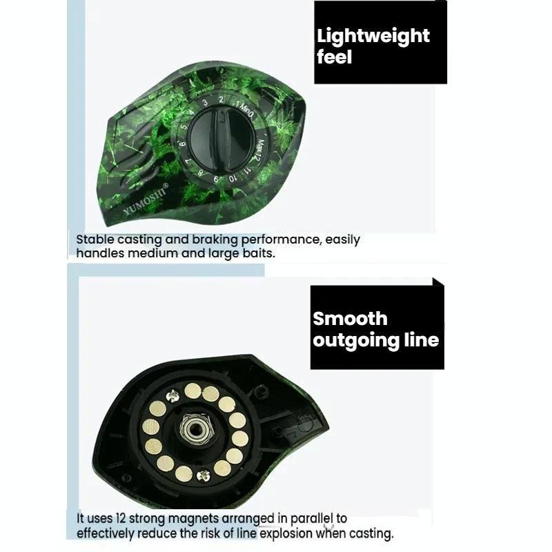 2. 12-Stage Magnetic Braking System: Equipped with 12 adjustable magnetic braking levels to ensure stable casting performance and reduce line tangling.