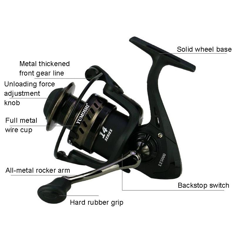 YUMOSHI LS3000 Metal Head Fishing Reel Sea Rod Spinning Reel(Metal Swing Arm+Hard Rubber Grip) (YUMOSHI)
