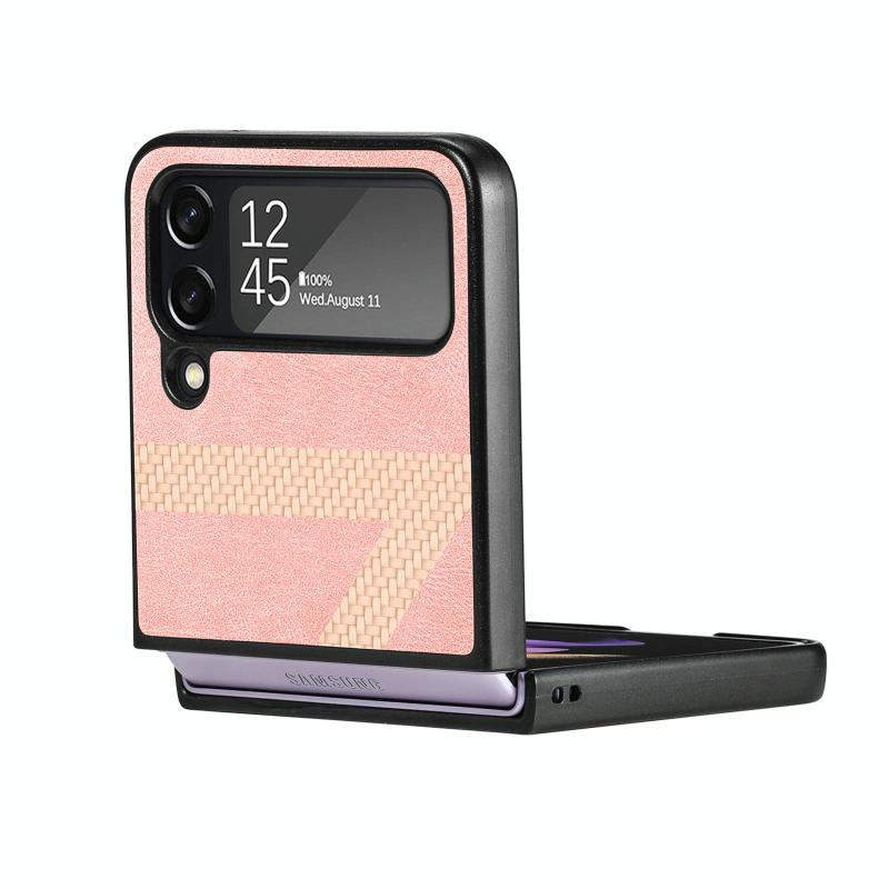 Z Shape Fiber Stitching Folding Phone Case For Samsung Galaxy Z Flip4(Pink)