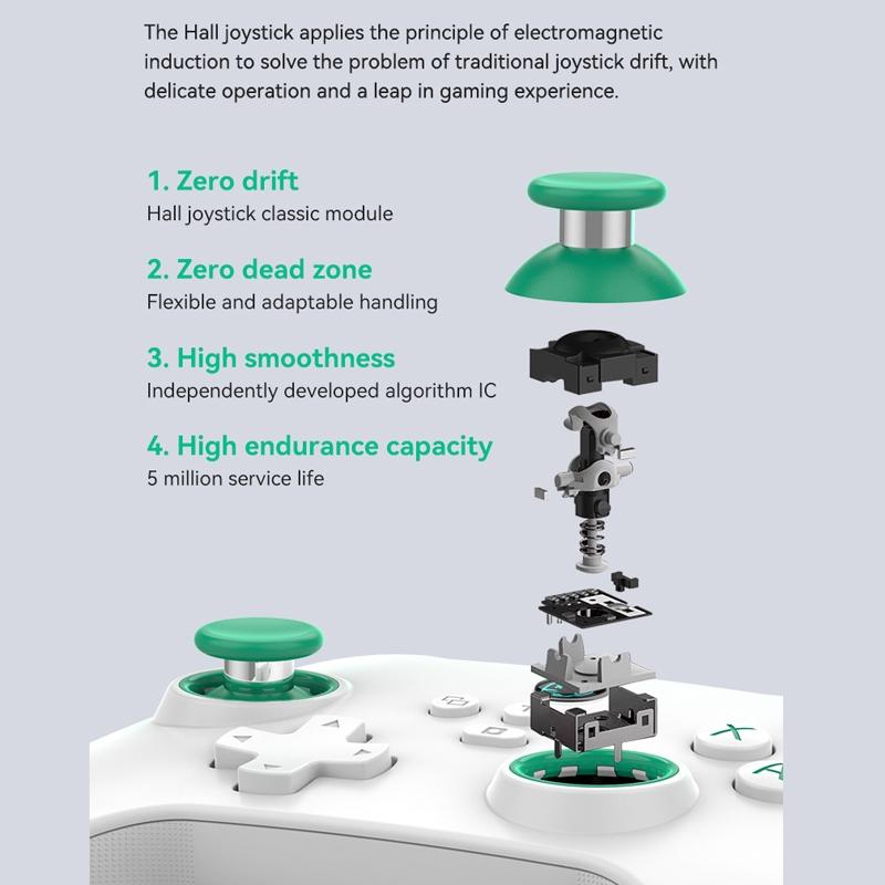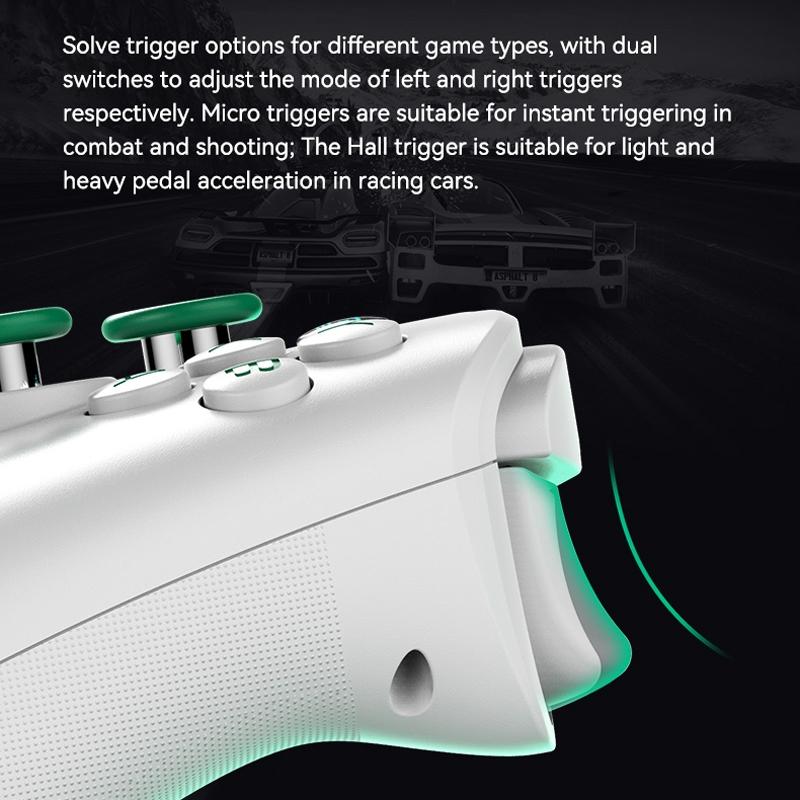 2. Equipped with e-sports Hall joystick, dual joystick with POM ring + metal ring; double-cut trigger button: micro trigger + Hall trigger switch.