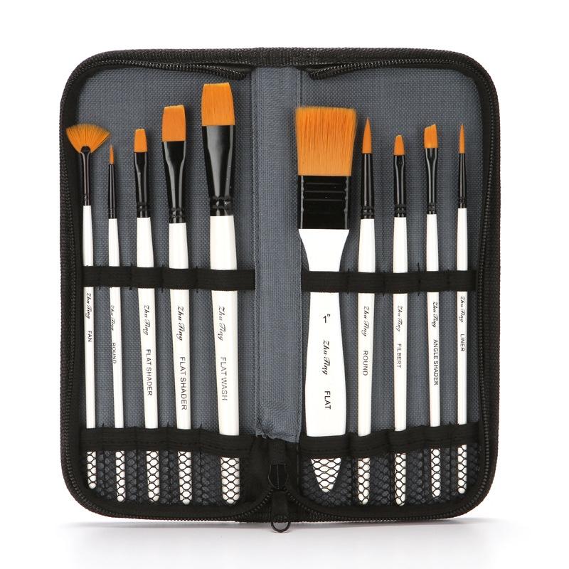 ZHU TING 10 In 1 Wooden Pole Nylon Wool Watercolor Pen And Board Brush Fan Shaped Painting Pen Set With Cloth BagZHUTING(White Rod) (ZHU TING)