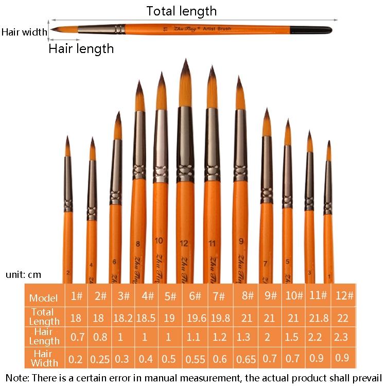 5. Features: nylon brush head, glossy and flexible hair, good water absorption, aluminum tube interface, durable, not easy to rust, wooden penholder, straight and strong, wear-resistant and fall-resistant, comfortable grip