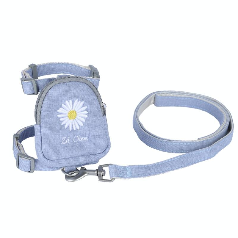 ZiChen Cat Traction Rope Small Pet Traction Embroidery Backpack, Size: M(Blue)