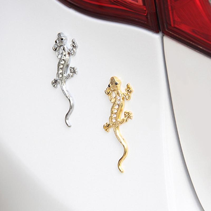 Zinc Alloy Rhinestone Gecko Metal 3D Car Sticker(Silver)