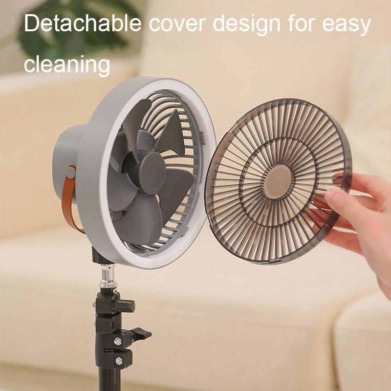 2. Functions: Hanging/standing dual-use, automatic head shaking, emergency charging, strong wind, three-level light adjustment, long battery life